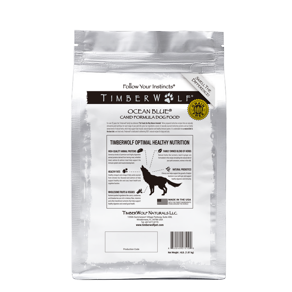 Fresh herring, ocean fish and spray dried salmon are key ingredients in our Timberwolf Ocean Blue® Legends formula and is perfect for dogs that are allergic to land-based meat proteins such as chicken, red meats or pork. A unique highly functional formula is ideal for helping to clear up dermatologic and other conditions caused by adverse food reactions or the buildup of toxins.